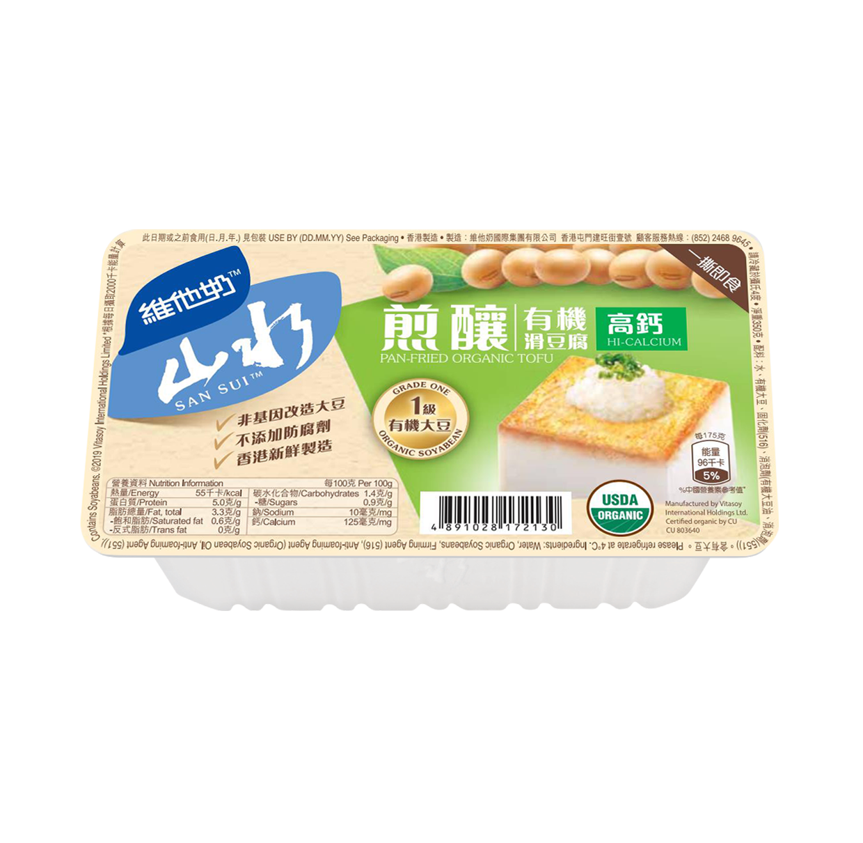 Strictly selection of "first-grade organic soybeans" provide a healthy and quality of life to consumer . Freshly made in Hong Kong everyday, inherits the traditional stone-ground processing method, offering smooth and rich in flavour . Granted USDA organic certification and no preservatives are added, which are suitable for healthy-conscious individuals. Vitasoy Sansui Pan-fried Organic Tofu is calcium-rich, fulfilled your 50%+ daily calcium intake^.