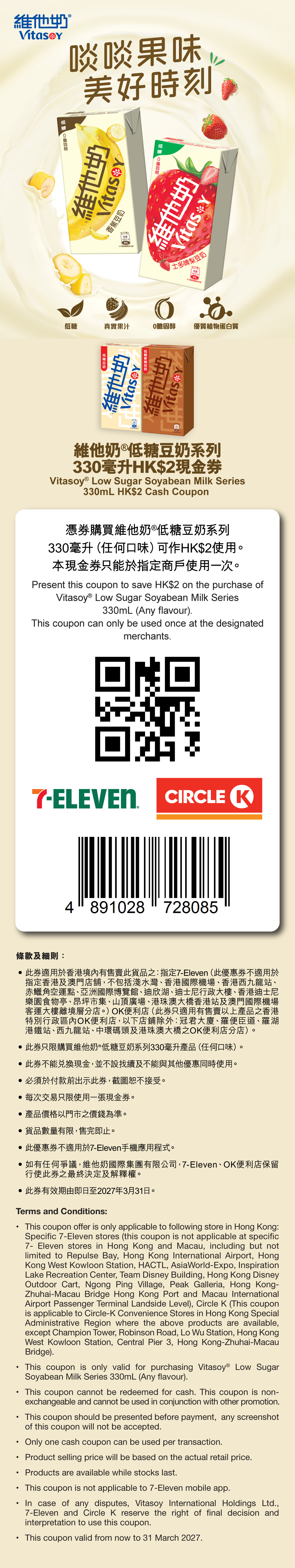 維他奶®低糖豆奶系列限時優惠券