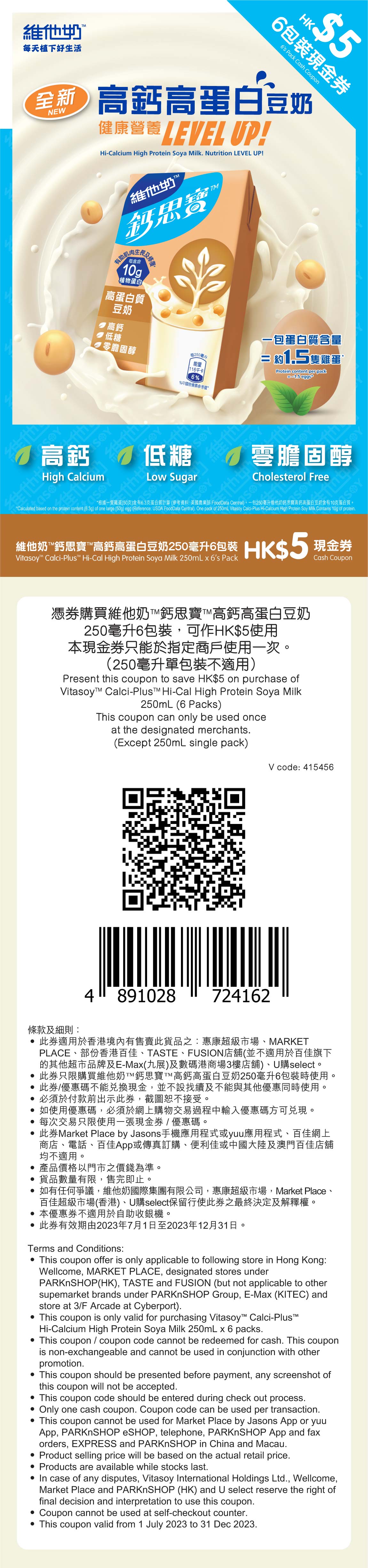 維他奶™️鈣思寶™️高鈣高蛋白質豆奶限時優惠券