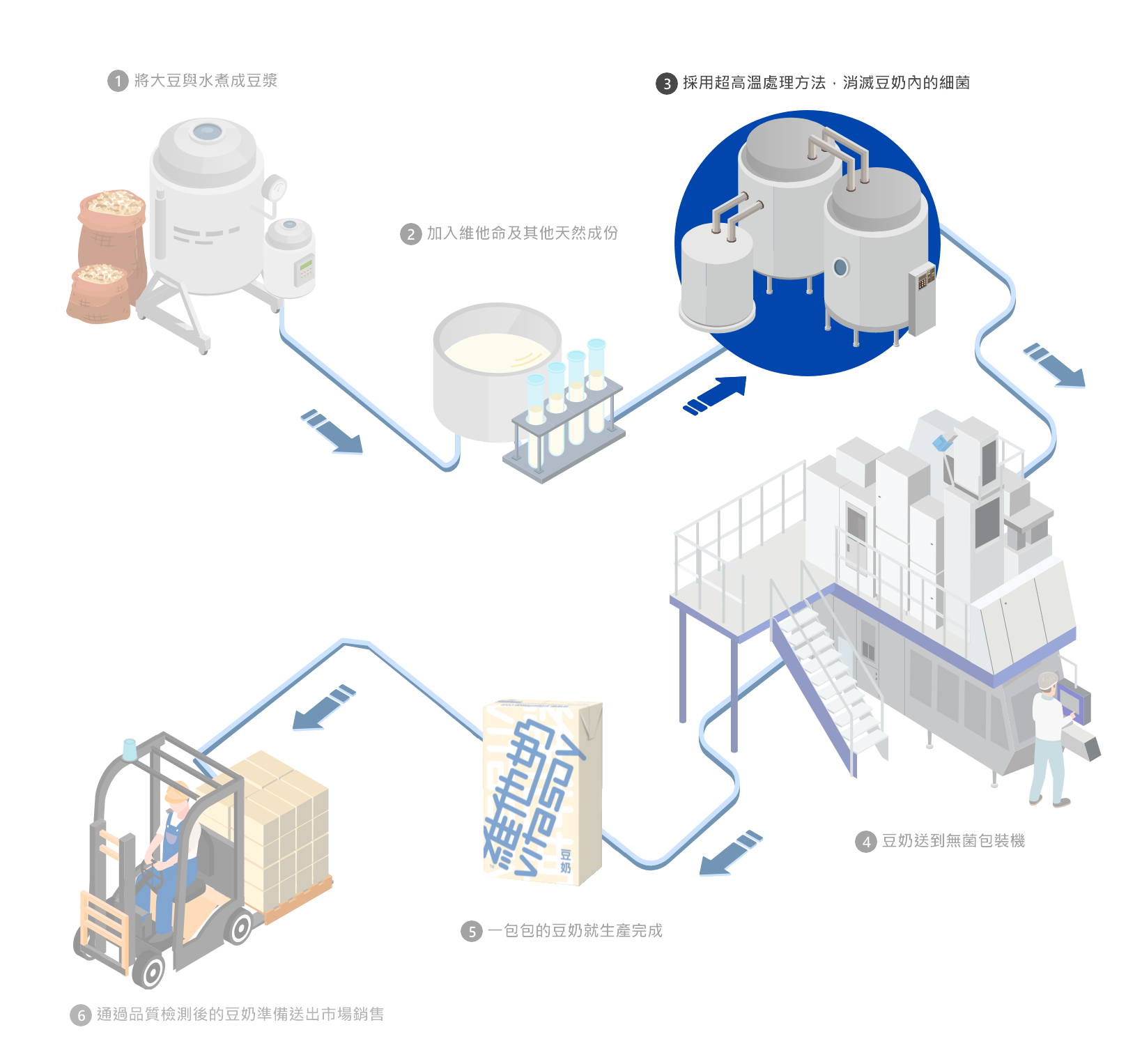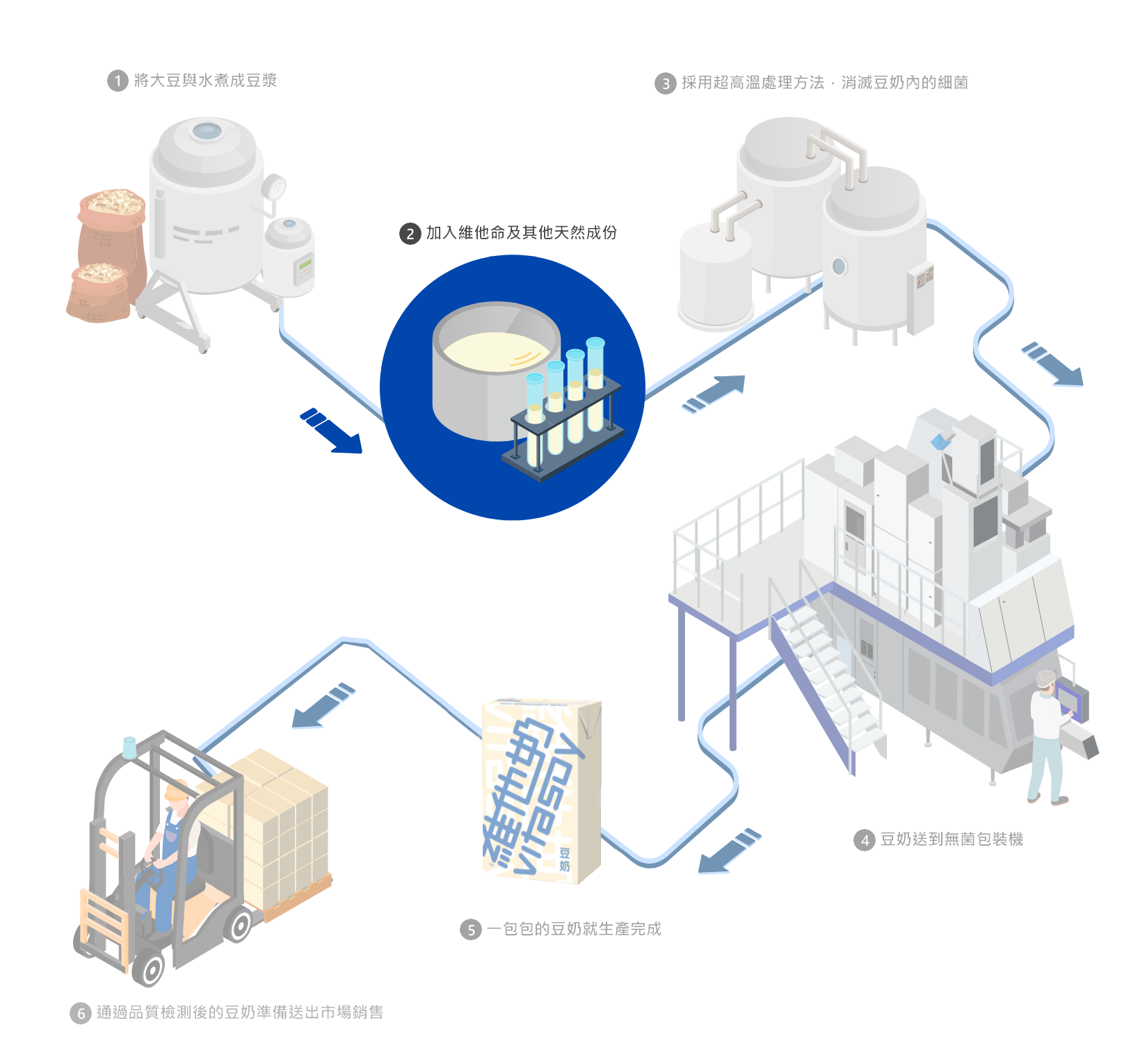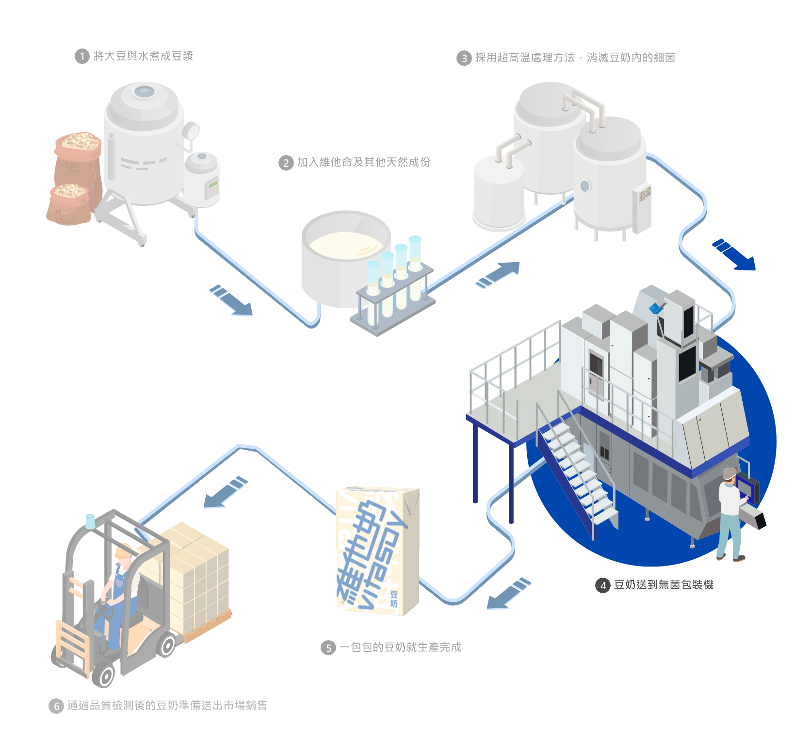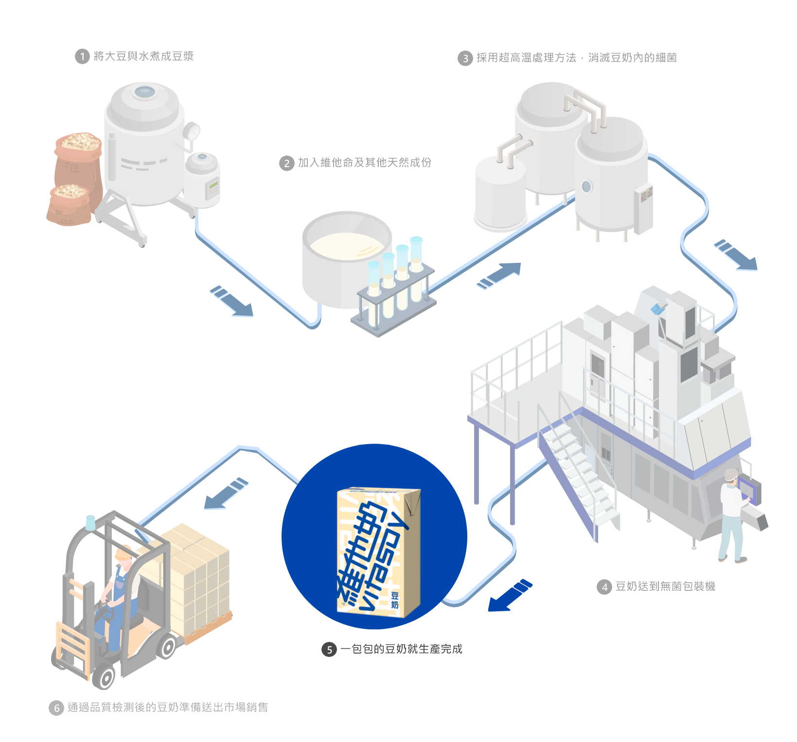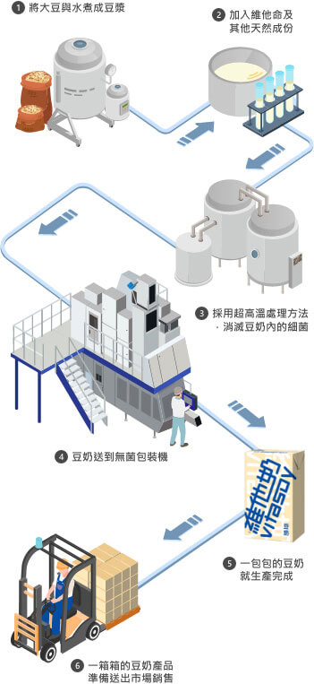 「維他奶」豆奶於1940 年誕生時,是以闊口玻璃樽出售,並需即日製造、運送和飲用。至 1953 年,「 維他奶 」採用高溫消毒方法處理,不用冷藏及不再受存放時間限制,銷售的覆蓋面大大增加。於 1975 年,維他奶公司率先將保鮮紙包裝飲品的生產設備引進香港,推出紙包裝「維他奶」。紙包裝「維他奶」既方便攜帶,且無須冷藏或添加防腐劑,更可儲存一年。時至今日,公司繼續生產各種口味和包裝的產品,行銷世界各地。